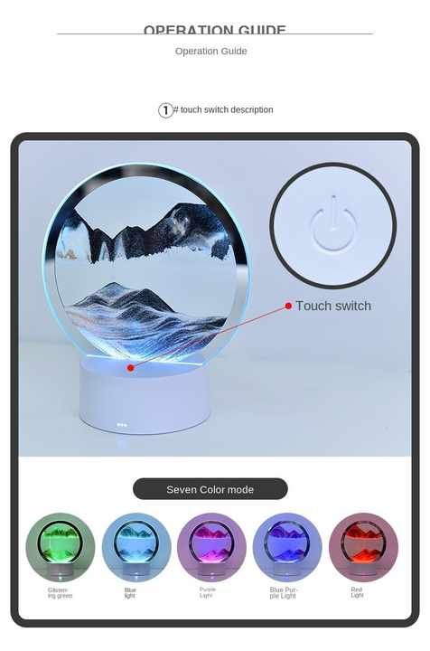 3D luminous LED desktop quicksand painting dynamic hourglass table lamp RGB color table lamp bedroom Decorative Night Lamp