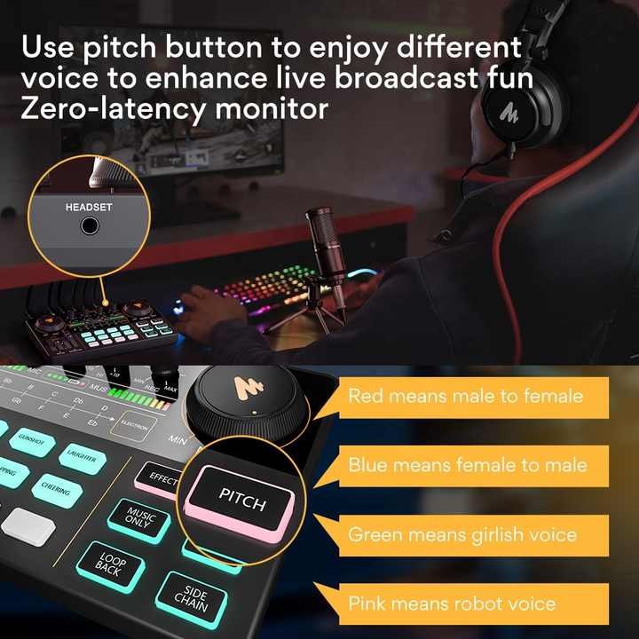 MAONO Audio Interface Sound Card XLR Podcast Microphone Voice Changer Monitor Headphone Mobile Phone Record Microphone Kit Mixer