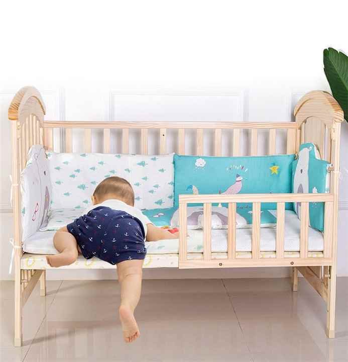 Pine wooden baby bed design/baby swing cot/baby crib attached adult bed